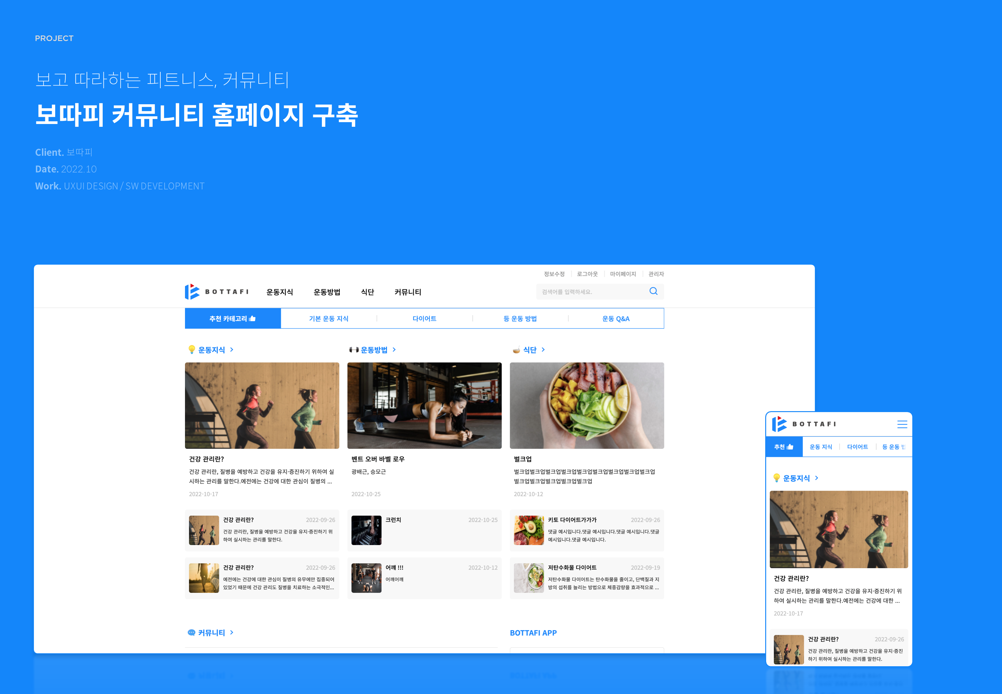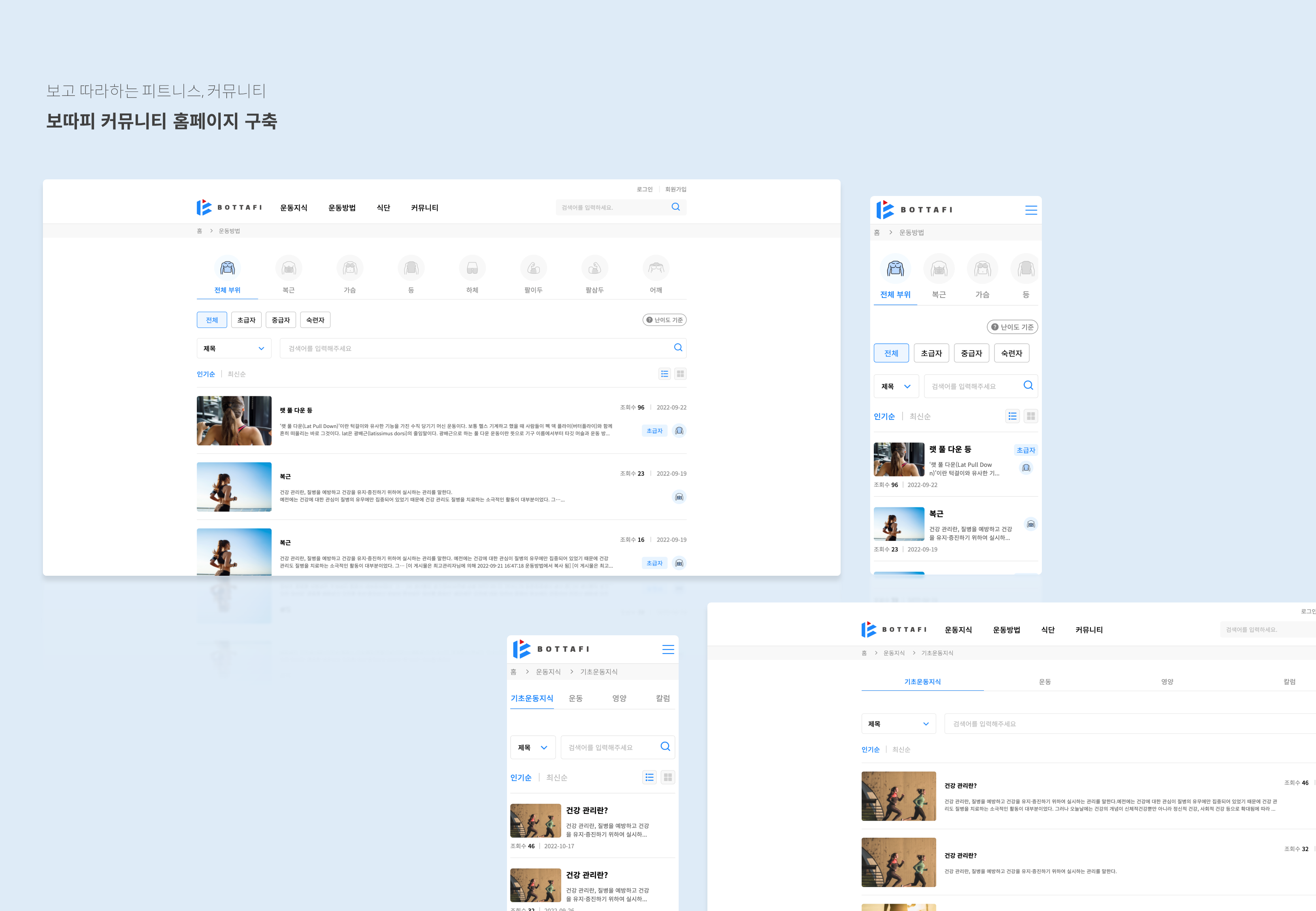 보고 따라하는 피트니스, 보따피의 커뮤니티 사이트를 디자인 및 개발하였습니다.