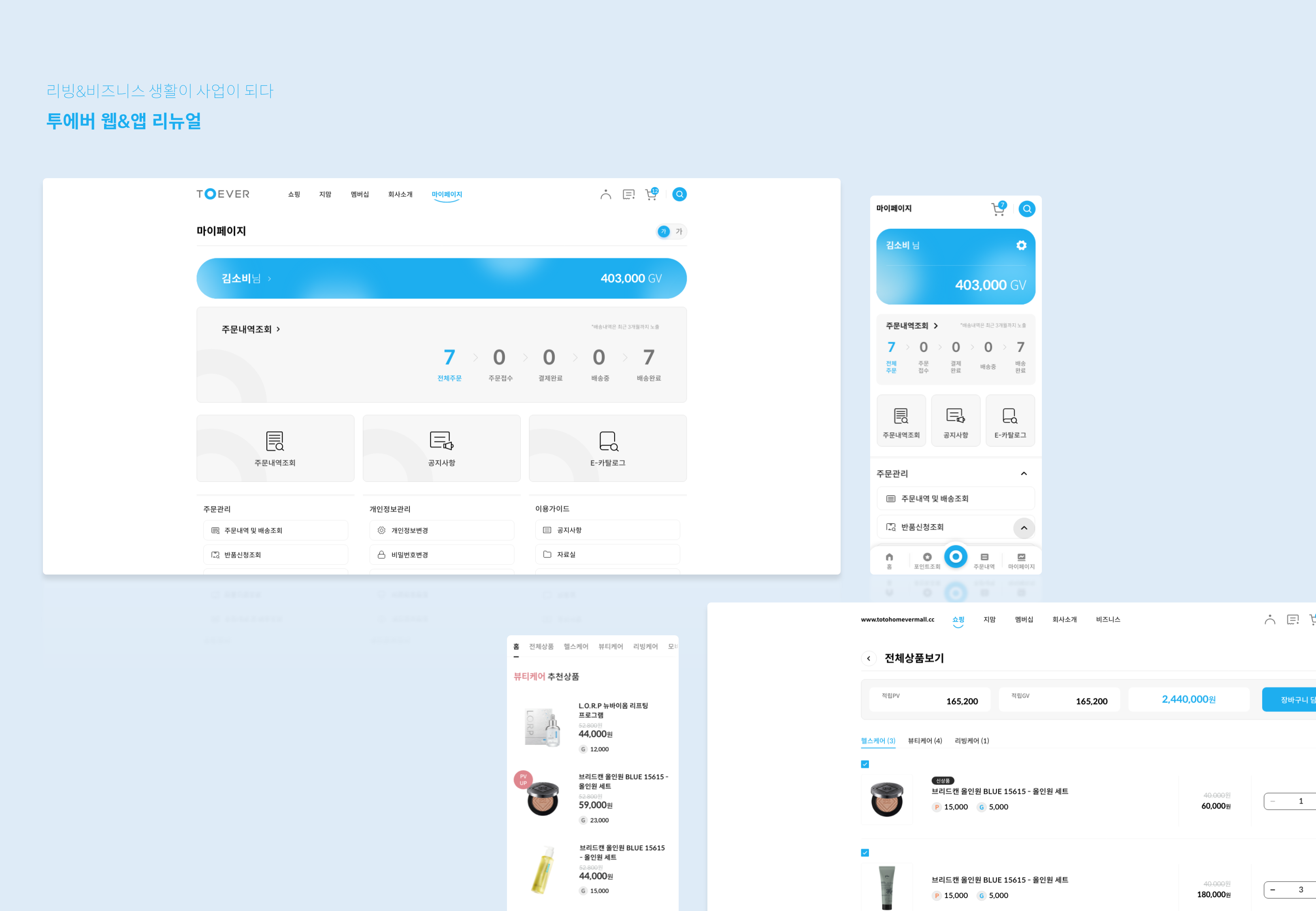 투에버 웹&앱 리뉴얼 페이지 정보 작성자 최고관리자 댓글 0건 조회 29회 작성일 23-07-12 16:49 목록 본문 스크랩 리빙&비즈니스 생활이 사업이 되다 투에버는 본질과 원칙에 충실하며 끝없는 도전정신을 바탕으로 혁신적인 유통환경을 조성하여 언제나 영원히 함께합니다. 생활이 사업이 되는 투에버에서는 소비자 회원과 사업자 회원으로 구분되어 쇼핑 및 멤버십 기능을 사용할 수 있습니다. 추천1 관련링크 https://www.toever.co.kr/main/index 3회 연결 이전글#3B3730 23.07.12 다음글#EADBB8 23.07.12