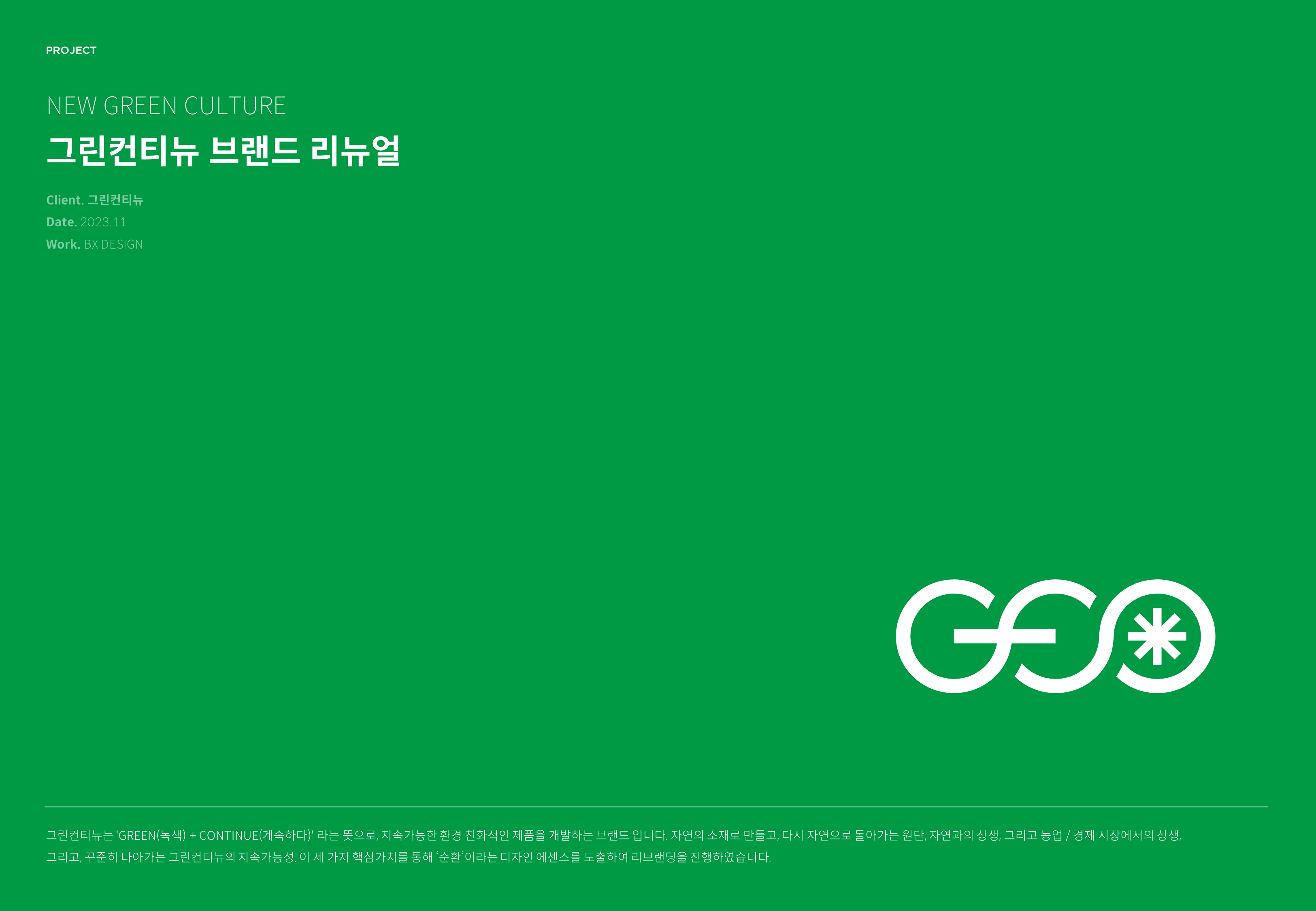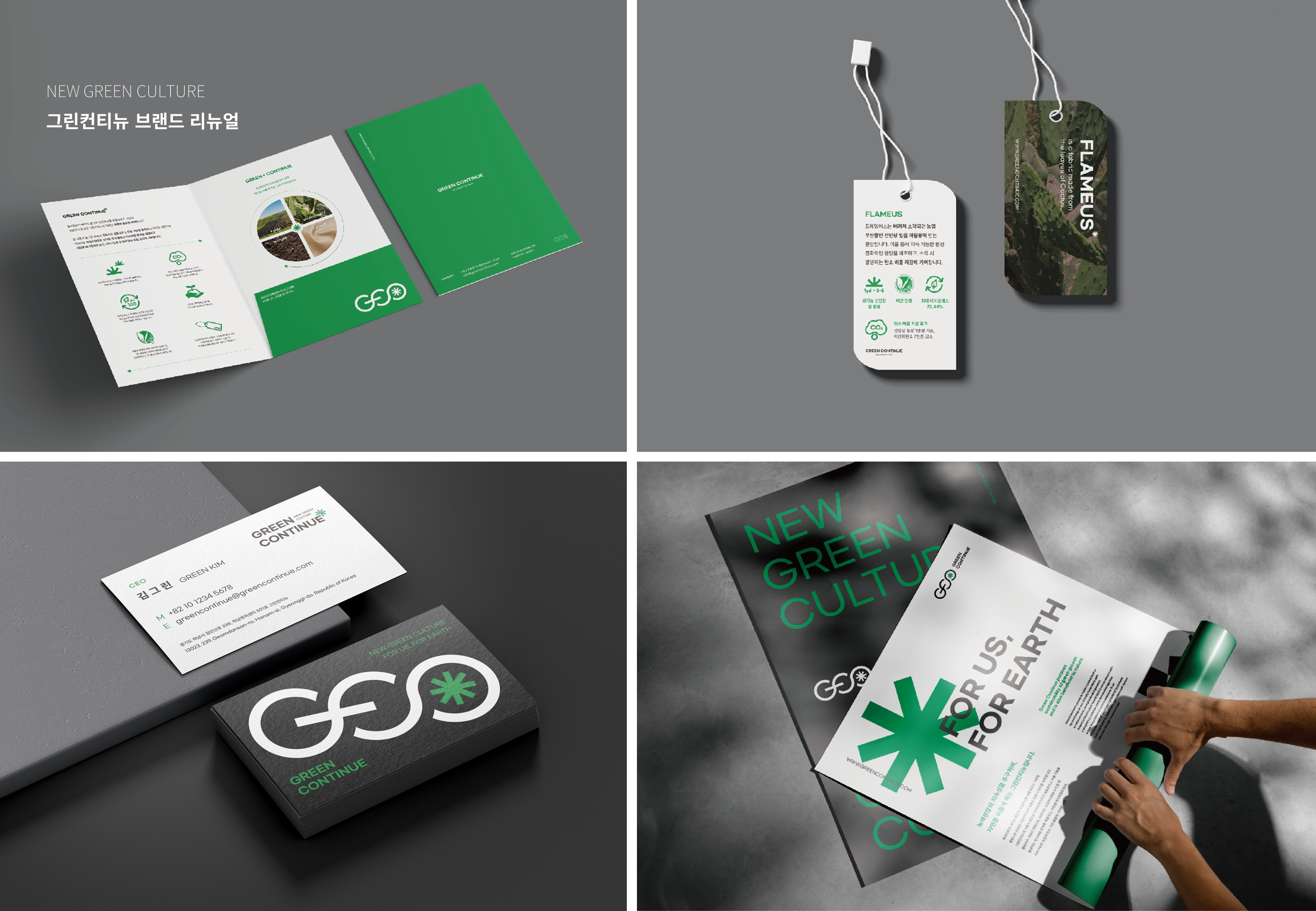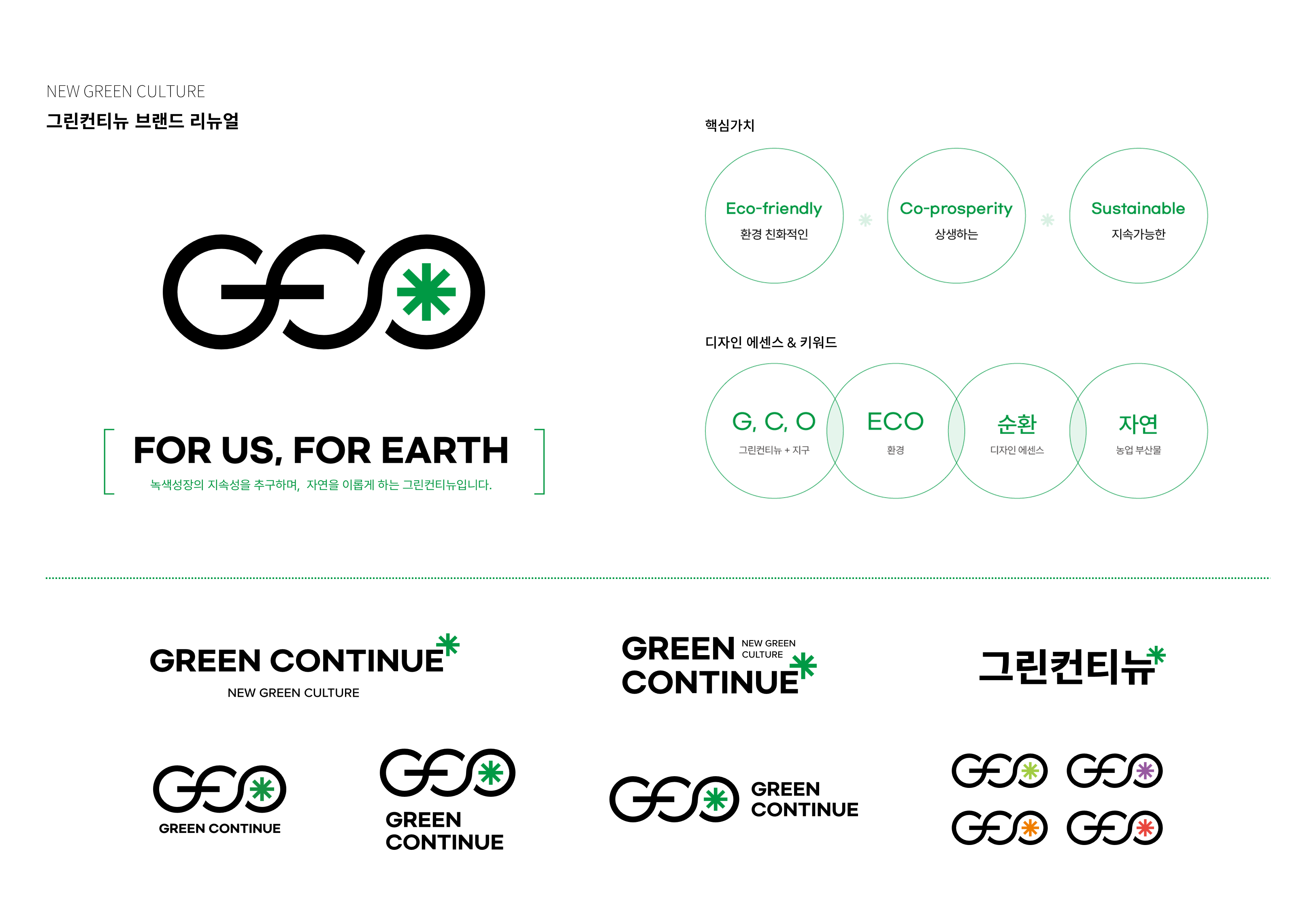 그리고, 꾸준히 나아가는 그린컨티뉴의 지속가능성. 이 세 가지 핵심가치를 통해 '순환'이라는 디자인 에센스를 도출하여 리브랜딩을 진행하였습니다.
