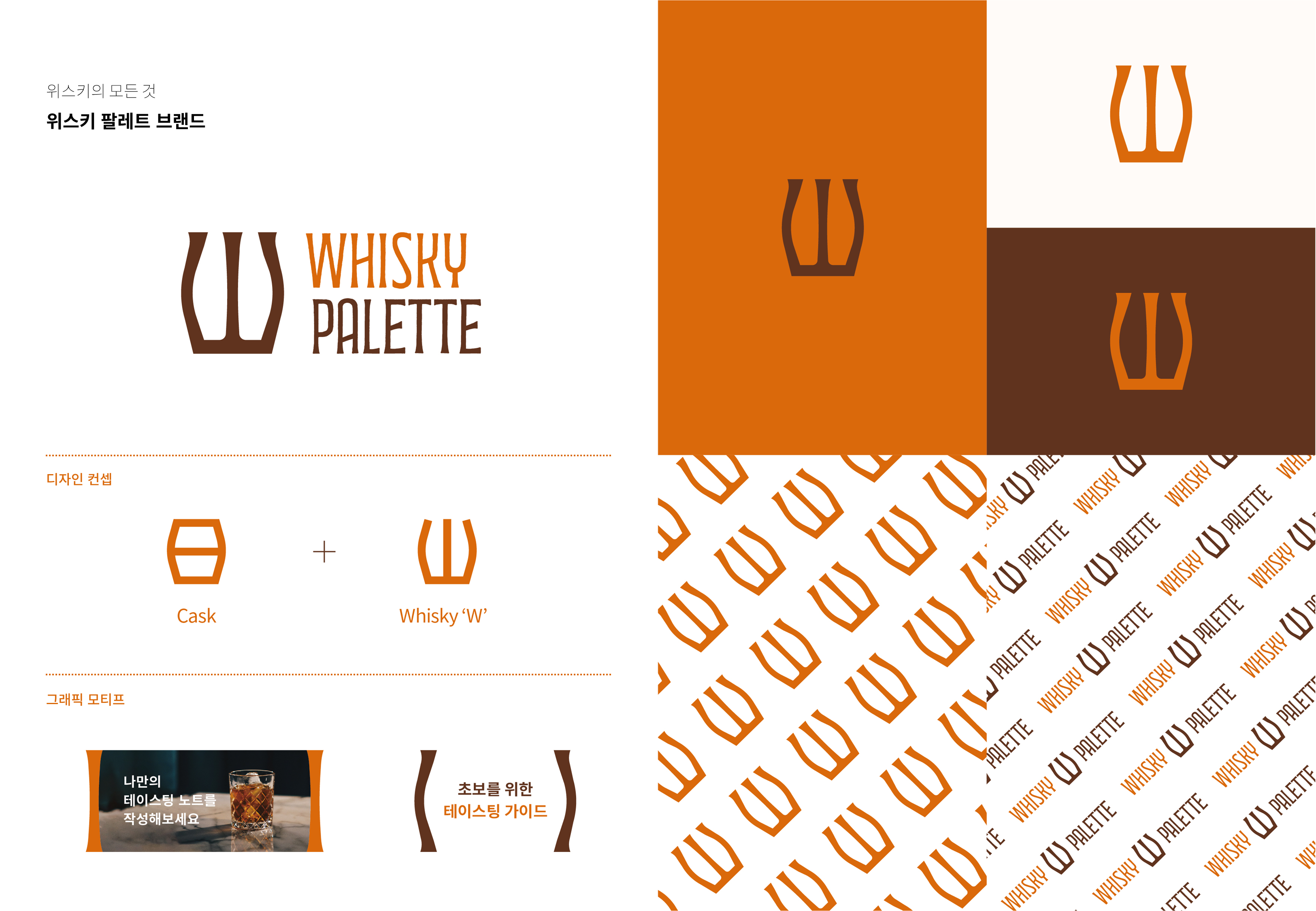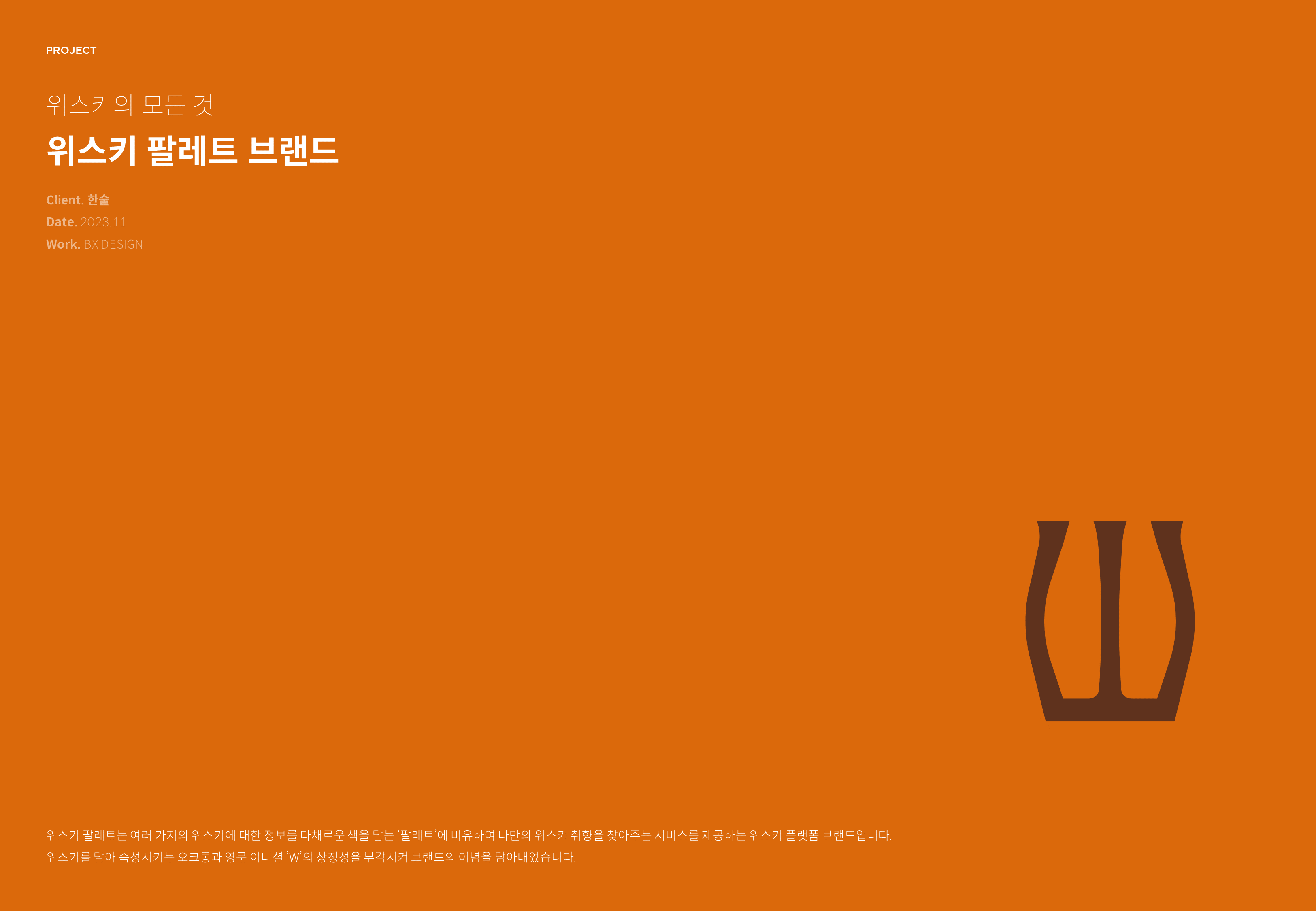 위스키를 담아 숙성시키는 오크통과 영문 이니셜 W'의 상징성을 부각시켜 브랜드의 이념을 담아내었습니다.