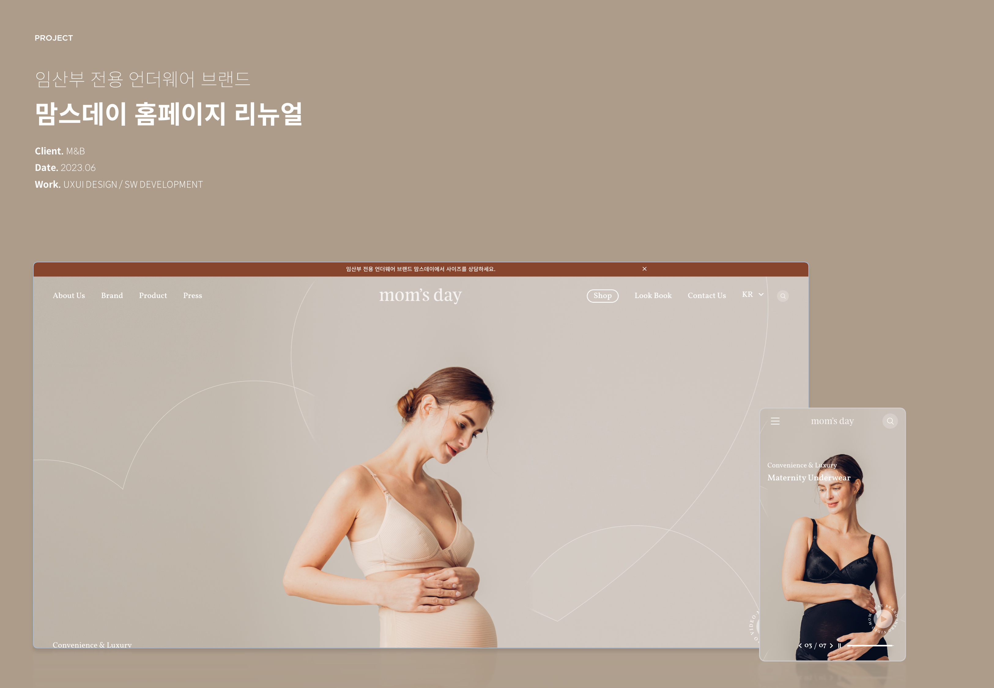 임산부 전용 언더웨어 브랜드 맘스데이 소개 홈페이지를 구축하였습니다.