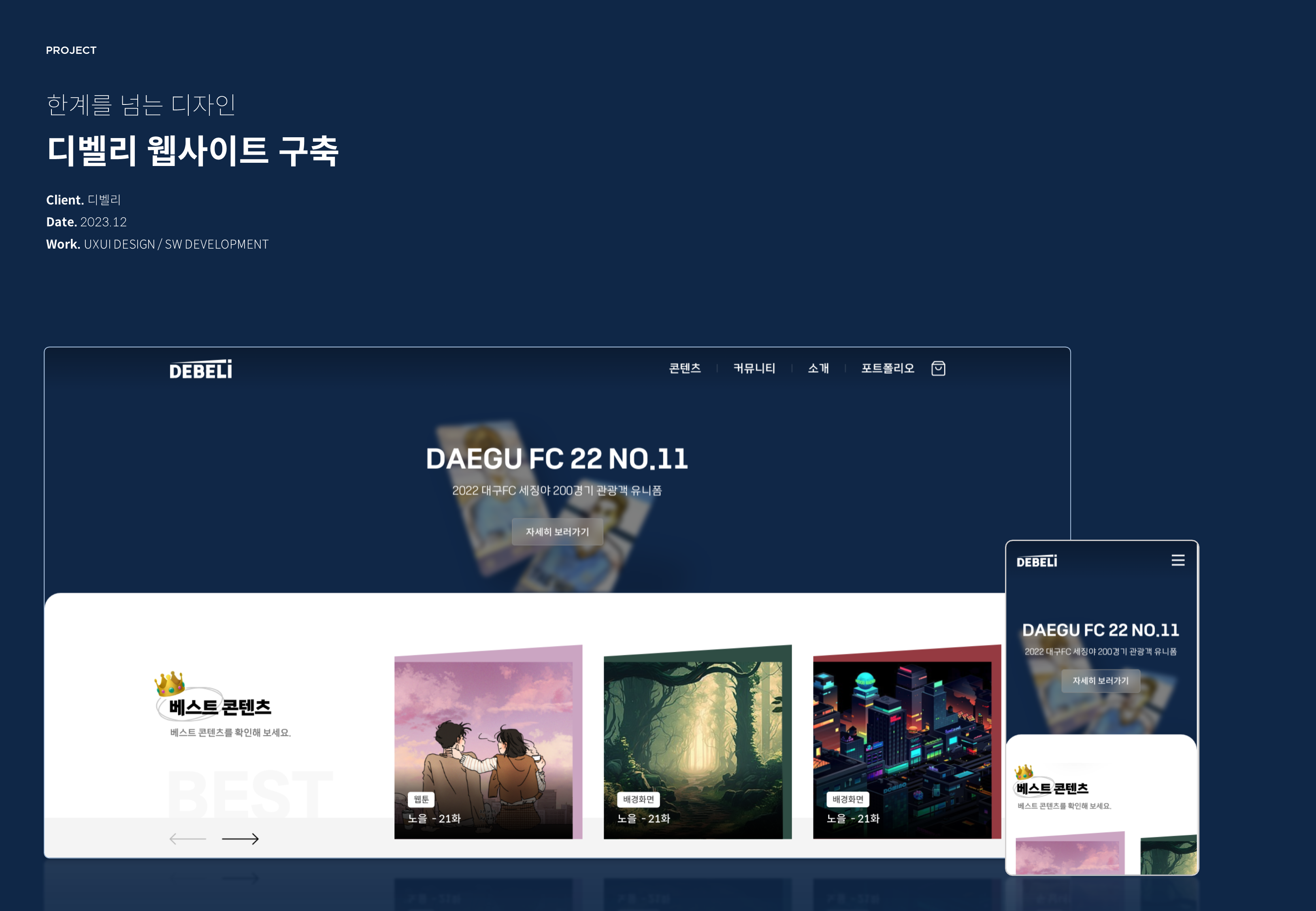 디벨리 웹사이트 구축 페이지 정보 작성자 최고관리자 댓글 0건 조회 14회 작성일 25-11-14 15:48 목록 본문 스크랩 한계를 넘는 디자인 디벨리 웹사이트를 구축하였습니다. 추천9 이전글#F3E8F3 25.11.14 다음글#1A173A 25.11.14