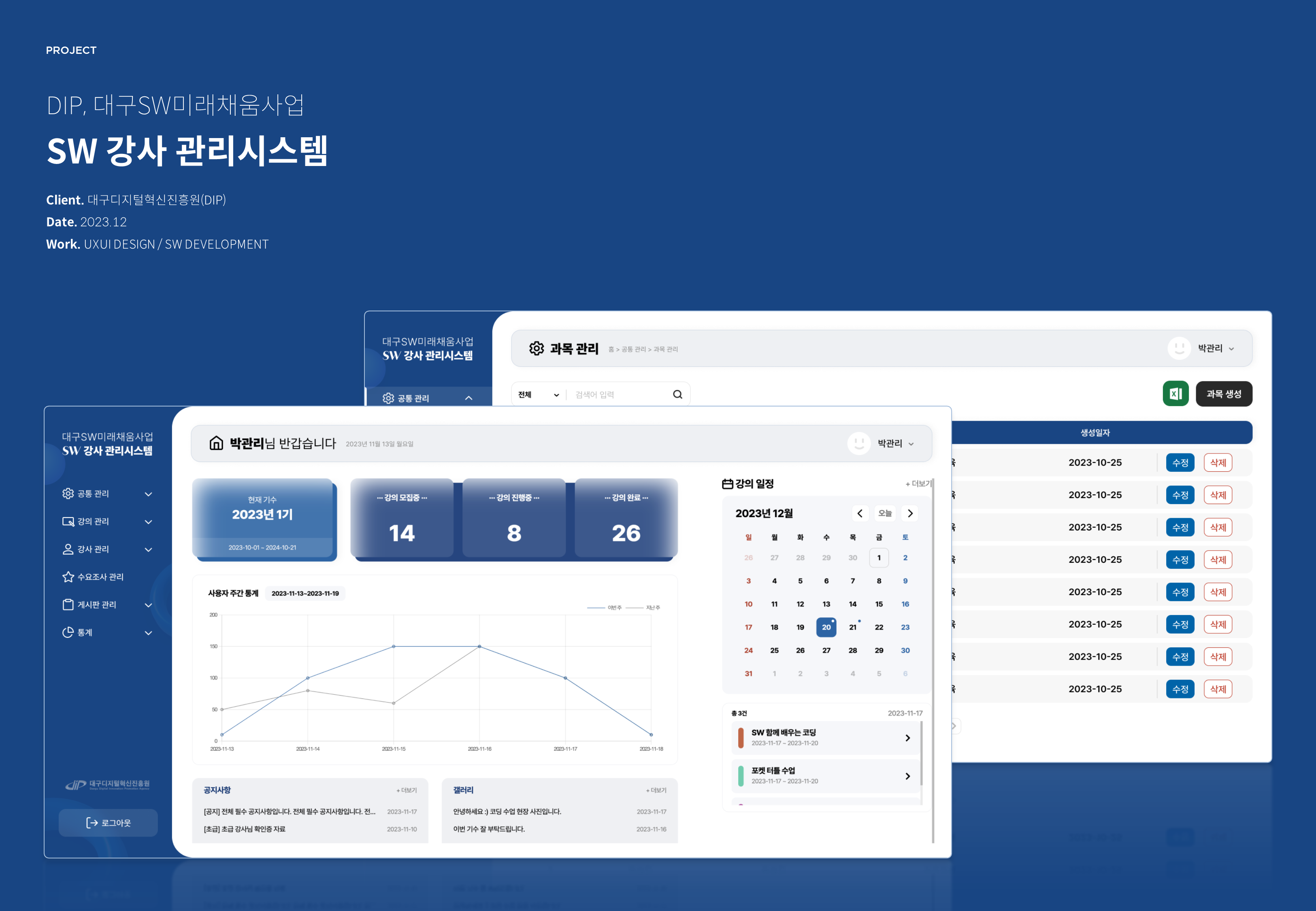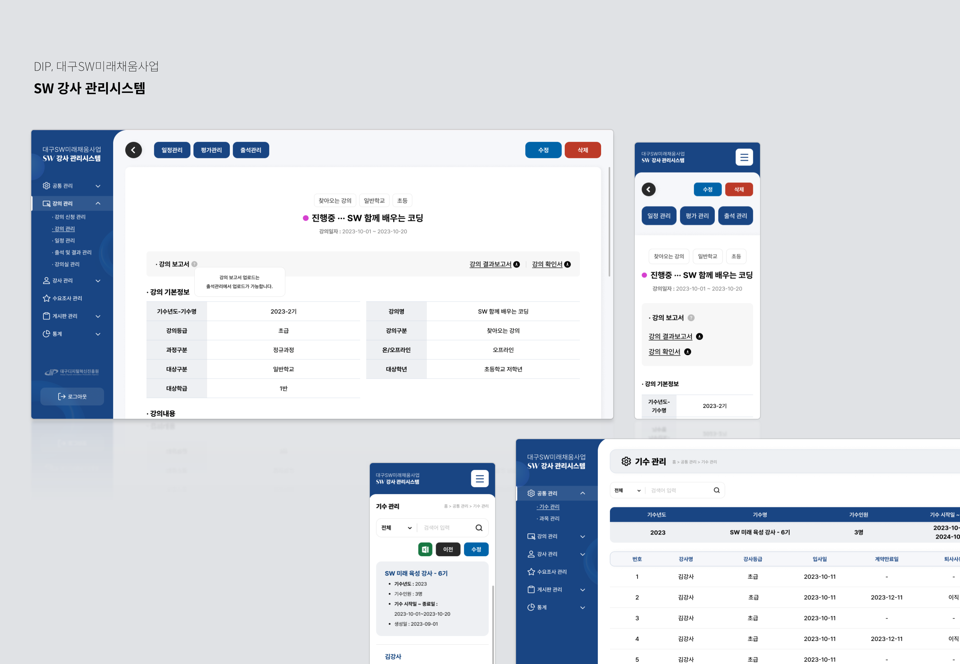 SW 강사 관리 시스템 구축 페이지 정보 작성자 최고관리자 댓글 0건 조회 17회 작성일 25-11-14 16:09 목록 본문 스크랩 DIP, 대구 SW미래채움사업 SW 강사 관리시스템 추천14 이전글#871B2A 25.11.17 다음글#807A75 25.11.14