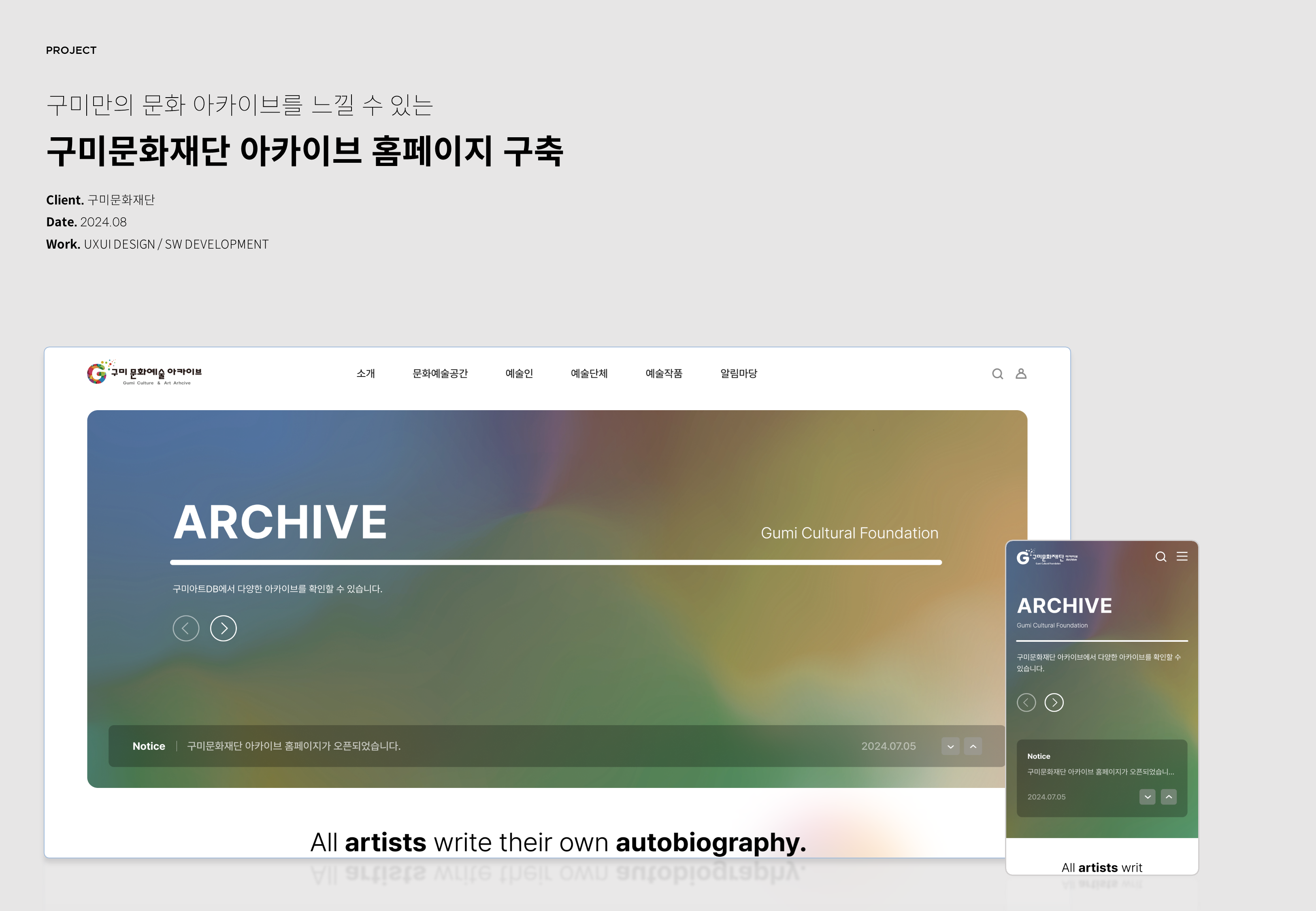 구미문화재단 아카이브 홈페이지 구축