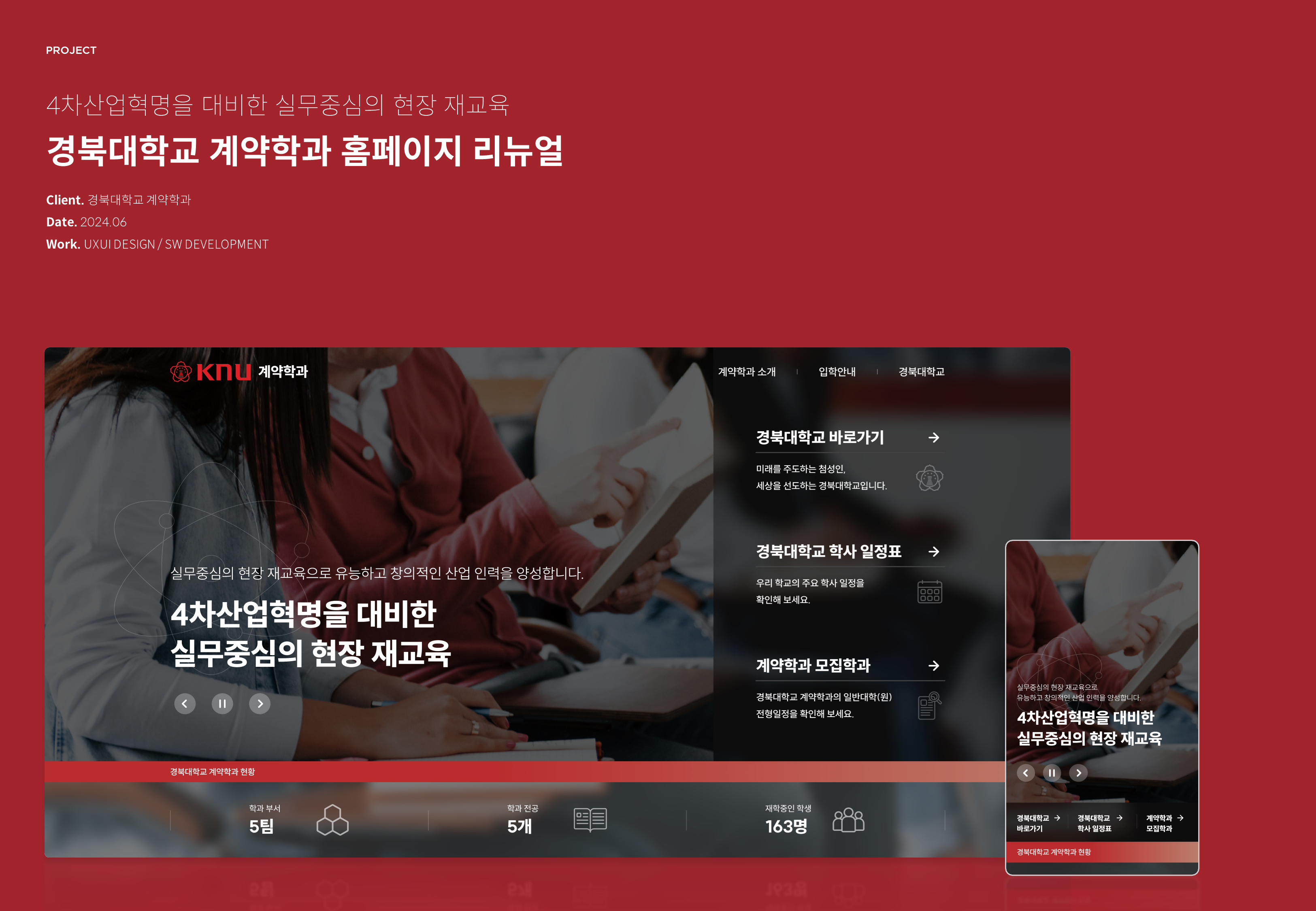4차산업혁명을 대비한 실무중심의 현장 재교육 경북대학교 계약학과 홈페이지를 리뉴얼하였습니다.