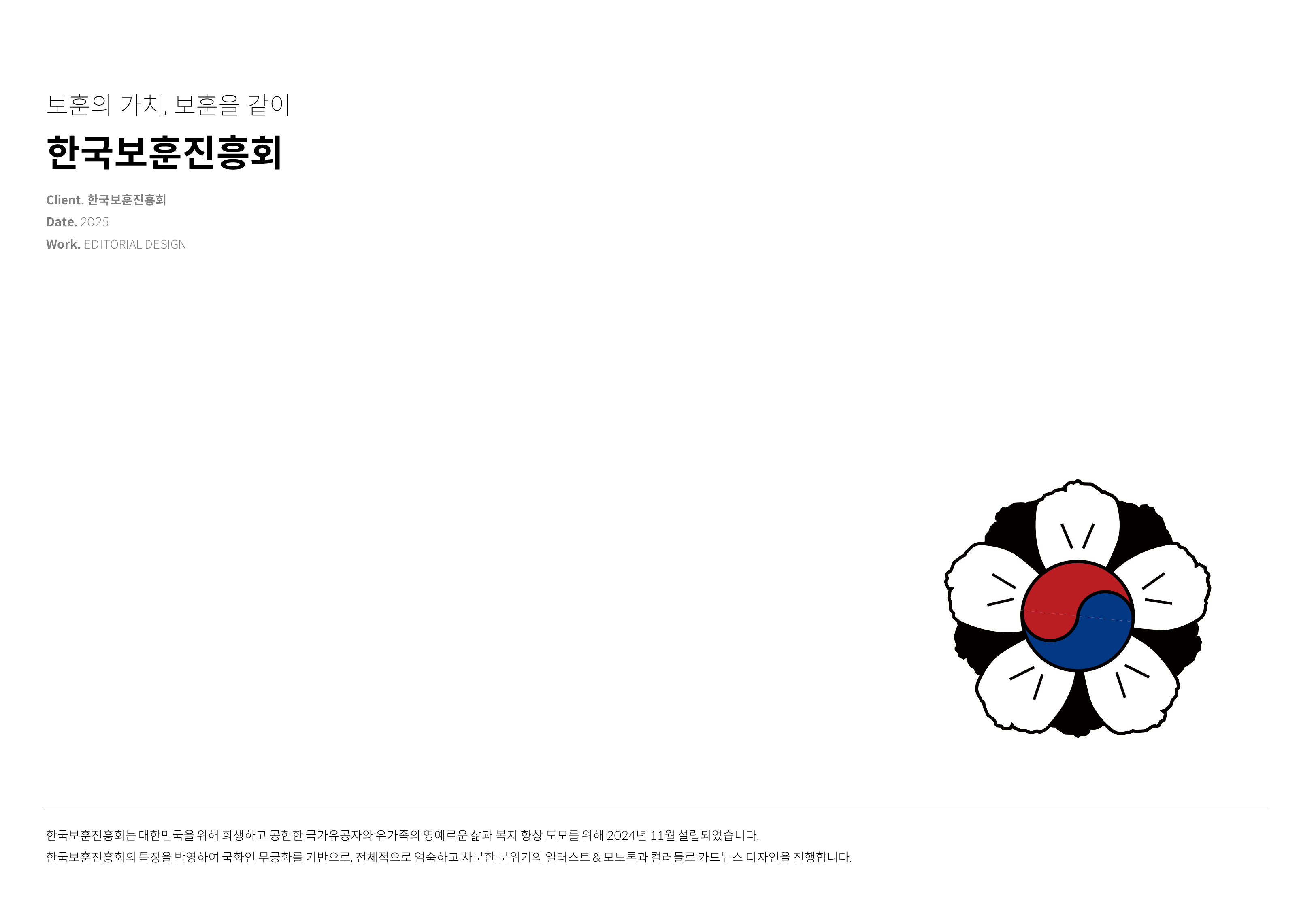 한국보훈진흥회 페이지 정보 작성자 최고관리자 댓글 0건 조회 66회 작성일 25-11-17 23:58 목록 본문 스크랩 보훈의 가치, 보훈을 같이 한국보훈진흥회 추천19 이전글#ffffff 25.11.18 다음글#FFFFFF 25.11.17